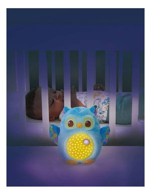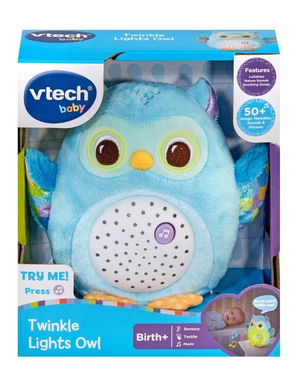 Meet baby’s soft and cuddly owl friend! Owl’s starry light up tummy provides a soothing and calming environment for baby. Songs, melodies, nature sounds and gentle white noise soothe and relax little ones. Owl’s heart button triggers calming sounds, songs and melodies and responds when baby cries.